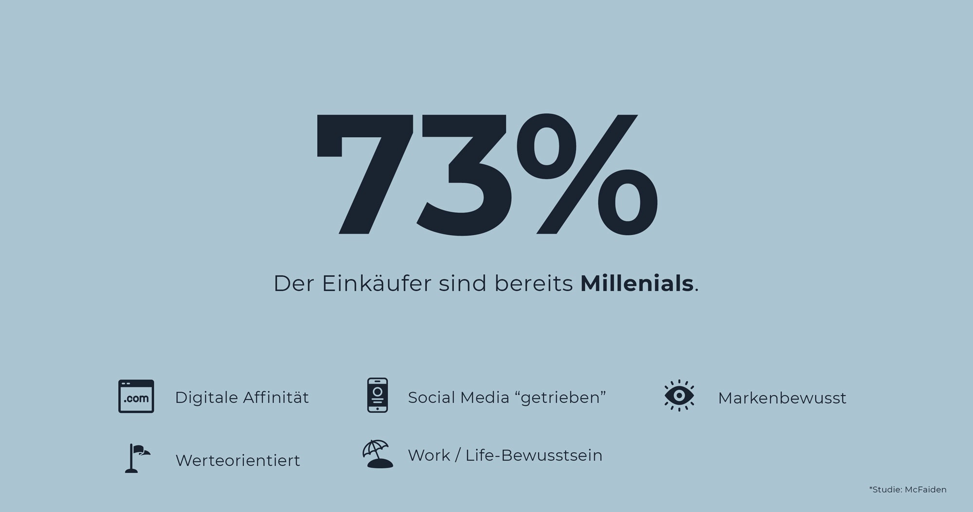 Was sich jedoch in den vergangenen Jahren geändert hat ist die Struktur der Entscheidungsträger. Laut aktueller Studie von McFaiden sind bereits 73% der Einkaufsentscheidungen von Unternehmungen von Millenials beeinflusst.